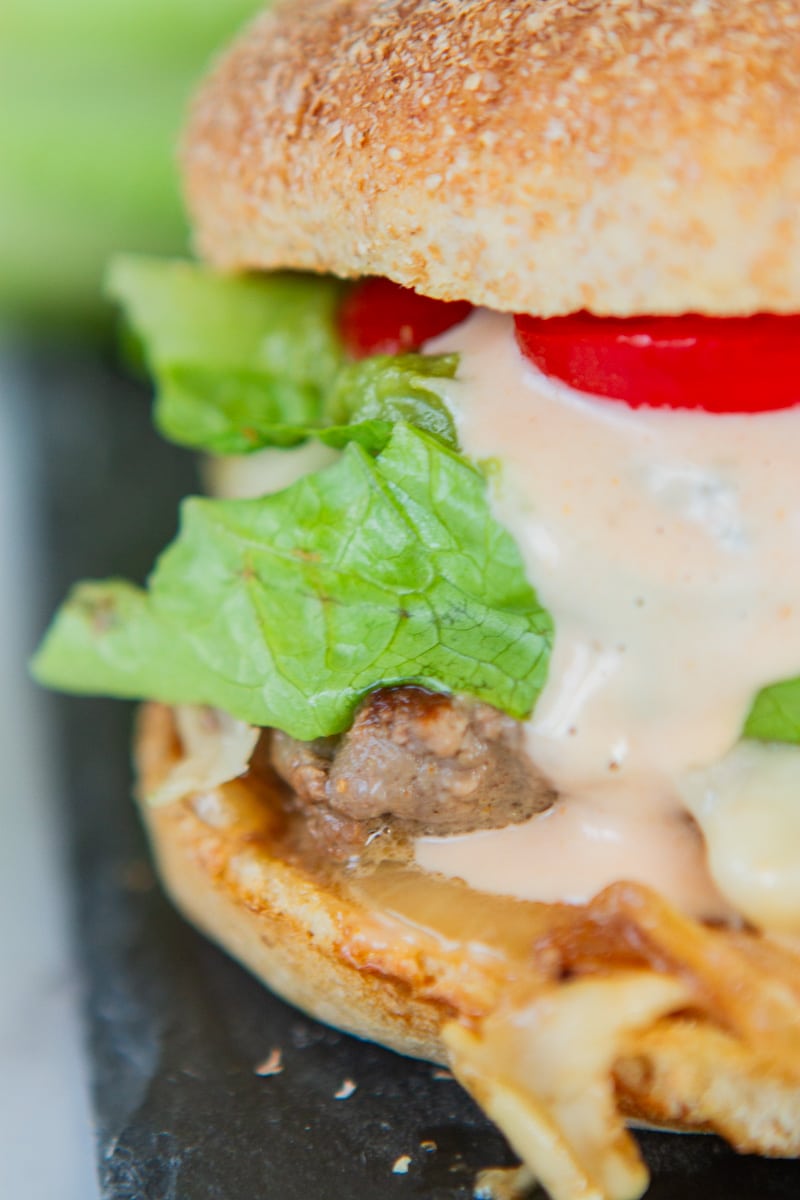 - Assemble and serve the Griddle Smash Burgers: Remove the patties from the skillet or griddle and place them onto the bottom half of the toasted burger buns. Add your desired toppings and creamy burger sauce. Place the top half of the burger buns on each burger and serve immediately while they're still hot and crispy.